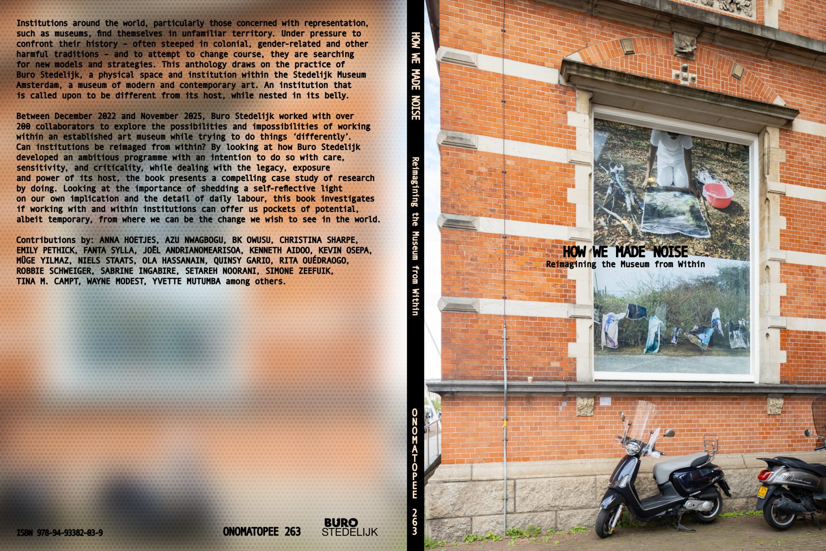 To document this unfolding, co-founding curator Rita Ouédraogo and project manager Niels Staats invited me early on to imagine a publication alongside them. If art is not a mirror held up to reality but a hammer with which to shape it—as Bertolt Brecht once suggested—then what metaphor suits a book that chronicles the slow, deliberate resculpting Buro set in motion? We conceived of the publication not as a reflection of the activism embedded in the program, but as a whittling instrument in its own right, committed to the transformative, curatorial nature of storytelling. How we narrate the work is how it will be archived, the intention for how we want it to be captured. This project grew into How We Made Noise: Reimagining the Museum from Within, completed at the end of Buro’s first term in November 2025.
